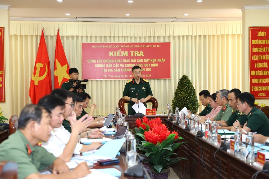 Từ ngày 05 đến ngày 06/02/2026, Đoàn kiểm tra của Cục Tác chiến – Cơ quan Thường trực Ban Chỉ đạo Bộ Quốc phòng về chống khai thác hải sản bất hợp pháp, không báo cáo và không theo quy định (chống khai thác IUU) do Đại tá Bùi Yên Tĩnh, Phó Cục trưởng Cục Tác chiến làm trưởng đoàn đã đến kiểm tra đợt cao điểm chống khai thác IUU tại các Đồn, Trạm Kiểm soát Biên phòng và cảng cá trên địa bàn thành phố Cần Thơ. Tham gia đoàn công tác có Đại tá Huỳnh Hoài Hận, Ủy viên Ban Thường vụ Đảng ủy, Phó Giám đốc Công an thành phố, lãnh đạo Sở Nông nghiệp và Môi trường thành phố.