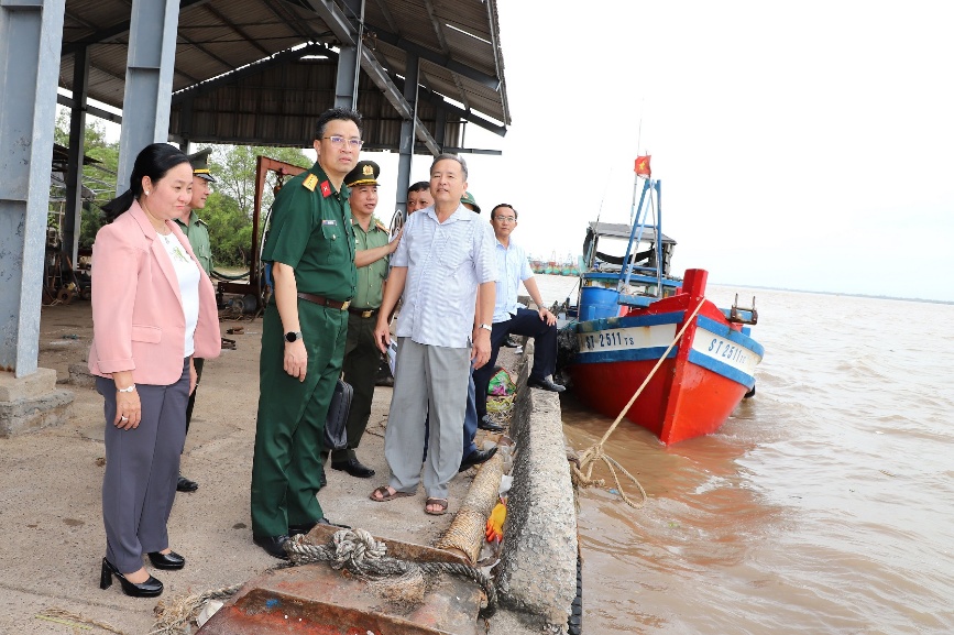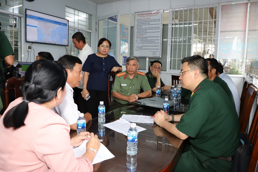 Theo kế hoạch, đoàn sẽ kiểm tra tại Đồn Biên phòng Trung Bình, Trạm Kiểm soát Biên phòng Trần Đề, cảng cá Trần Đề, cửa sông Trần Đề thuộc ấp Bãi Giá, xã Trần Đề, thành phố Cần Thơ. Tập trung kiểm tra chuyên đề 03 nội dung theo ý kiến chỉ đạo của Phó Thủ trướng Chính phủ Trần Hồng Hà tại Phiên họp lần thứ 30 Ban Chỉ đạo quốc gia chống khai thác IUU. Cụ thể các nội dung sau: (1) Công tác kiểm tra, kiểm soát, đăng ký tàu cá, quy trình đăng ký, làm thủ tục xuất, nhập bến của Trạm kiểm soát Biên phòng; công tác phối hợp giữa lực lượng Bộ đội Biên phòng và cơ quan chức năng địa phương trong kiểm soát, quản lý, giám sát tàu cá xuất, nhập qua Trạm kiểm soát biên phòng, cảng cá và những tàu cá neo đậu tại bãi ngang, cửa sông, cửa lạch (không thực hiện xuất, nhập tại Trạm kiểm soát biên phòng, cảng cá). (2) Việc xử phạt hành chính, hồ sơ xử phạt, tiến độ xử phạt, khép hồ sơ; tính nghiêm minh trong xử lý tàu cá không đủ điều kiện hoạt động, tàu cá hoạt động trái phép, nhất là số tàu cá bán, sang nhượng (nhưng chưa rút hồ sơ). (3) Công tác khai thác, sử dụng, tích hợp dữ liệu, sử dụng phần mềm quản lý, theo dõi tàu cá trên hệ thống VNFishbase, sử dụng hệ thống cảnh báo mất kết nối VMS, nhật ký điện tử khai thác thủy sản (e-logbook); sử dụng hệ thống cảnh báo vị trí tàu cá tự động khi mất kết nối VMS trên biển; hệ thống cơ sở dữ liệu xuất nhập bến; hệ thống, đối chiếu cơ sở dữ liệu. Sau khi nghe báo cáo tình hình, kết quả triển khai thực hiện đợt cao điểm chống khai thác IUU trên địa bàn thành phố Cần Thơ từ ngày 15/10/2025 đến nay, đoàn công tác đã tiến hành kiểm tra thực tế về hệ thống văn bản, kế hoạch, sổ sách đăng ký, theo dõi; công tác phối hợp của Bộ đội Biên phòng với các cơ quan chức năng và địa phương về theo dõi, quản lý tàu cá “3 không”; kết quả xử lý các vụ việc tàu cá vi phạm. Đồng thời kiểm tra vận hành, thao tác sử dụng phần mềm thực hiện thủ tục xuất, nhập bến, theo dõi, quản lý tàu cá tại Đồn, Trạm kiểm soát Biên phòng, cảng cá, cửa sông, bến ngang, kiểm tra thực tế tàu cá neo đậu…