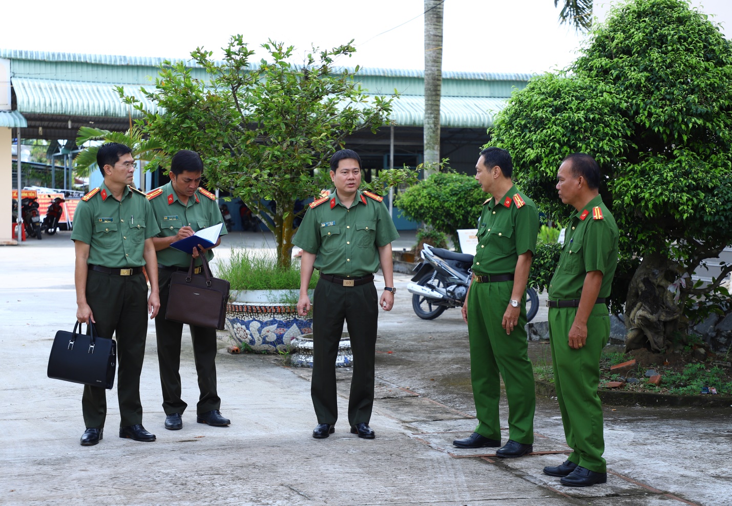 Đồng chí Trung tá Đinh Tùng An, Phó Giám đốc Công an thành phố cùng đoàn công tác đến khảo sát tại Công an xã Vĩnh Lợi