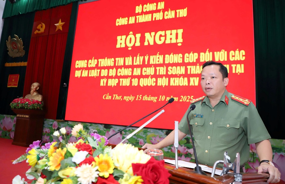 Lực lượng Pháp chế Công an thành phố Cần Thơ tham mưu tổ chức Hội nghị cung cấp thông tin, tuyên truyền và lấy ý kiến về các dự án luật do Bộ Công an chủ trì soạn thảo trình tại Kỳ họp thứ 10, Quốc hội khóa XV