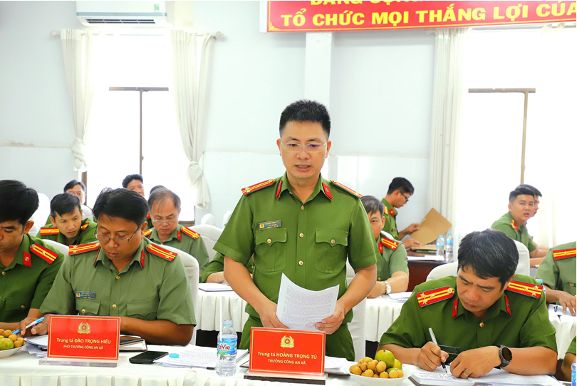 Qua kiểm tra thực tế, Đoàn công tác cũng đã lắng nghe những khó khăn, vướng mắc từ các đơn vị cơ sở liên quan đến công tác cán bộ, cơ sở vật chất, hạ tầng, trang thiết bị phục vụ công tác….. Đồng chí Đại tá Mai Xuân Thảo, Phó Chánh Văn phòng Bộ Công an biểu dương tinh thần trách nhiệm, nỗ lực và kết quả đạt được của Công an các đơn vị trong thời gian qua, đặc biệt là qua 4 tháng đầu năm 2026. Công an các đơn vị đã kịp thời tham mưu cho cấp ủy, chính quyền triển khai thực hiện hiệu quả các mặt công tác bảo đảm an ninh trật tự và tình hình liên quan an ninh quốc gia trên địa bàn, không để hình thành điểm nóng phức tạp. Kết quả thực hiện các chỉ tiêu đạt tỷ lệ cao. Đặc biệt, trong công tác bảo đảm an ninh trật tự bầu cử đại biểu Quốc hội khóa XVI và đại biểu Hội đồng nhân dân các cấp, nhiệm kỳ 2026 – 2031,Công an các đơn vị đã triển khai đồng bộ các biện pháp nghiệp vụ, tăng cường bám sát địa bàn cơ sở, nắm tình hình, bảo đảm an toàn các điểm bầu cử trên địa bàn.