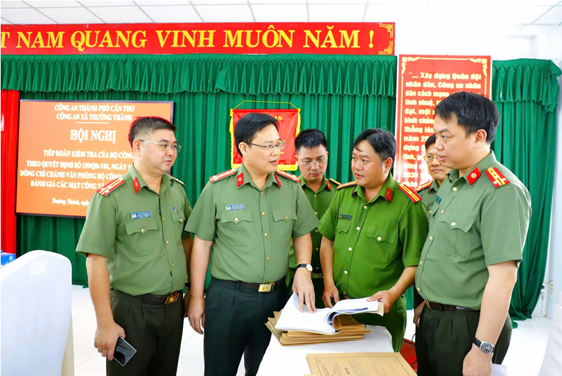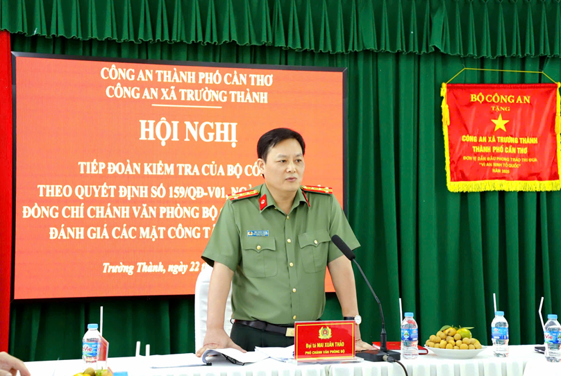 Nhằm tháo gỡ khó khăn, vướng mắc, góp phần giúp Công an các địa phương nâng cao chất lượng, hiệu quả trong thực hiện nhiệm vụ, ngày 22/4/2026, Đoàn kiểm tra Bộ Công an do đồng chí Đại tá Mai Xuân Thảo, Phó Chánh Văn phòng Bộ Công an làm Trưởng đoàn đến kiểm tra, đánh giá các mặt công tác tại Công an xã Trường Thành và Công an phường Phước Thới, Thành phố Cần Thơ. Tham gia cùng đoàn còn có các thành viên là đại diện lãnh đạo các phòng chức năng Công an thành phố.
