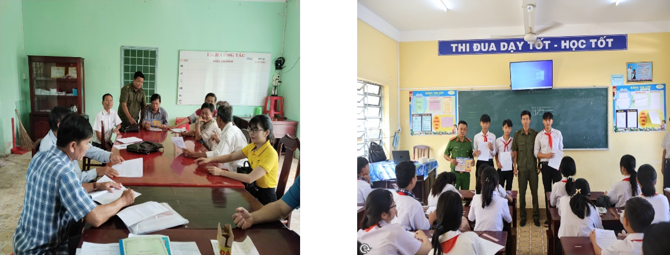 Lực lượng tham gia bảo vệ an ninh, trật tự ở cơ sở hỗ trợ Công an phường tuyên truyền pháp luật cho Nhân dân và học sinh