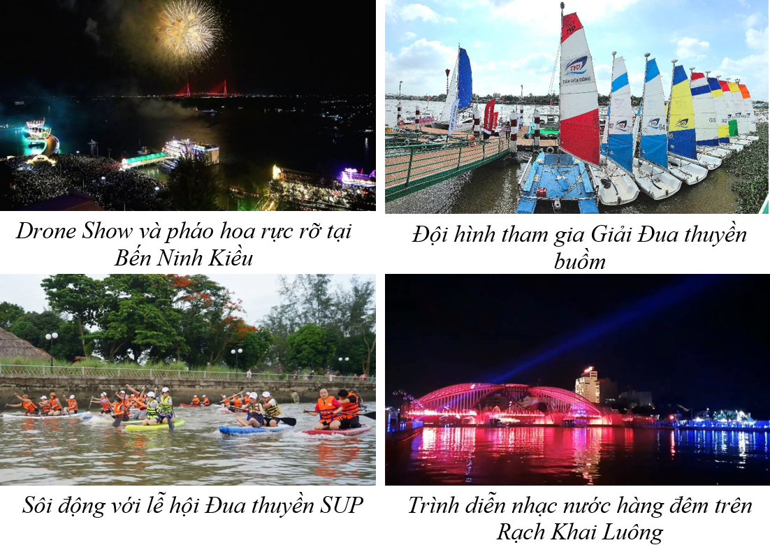 Với chủ đề “Cần Thơ - Sắc màu sông nước”, Lễ hội văn hóa sông nước Cần Thơ năm 2025 với chuỗi sự kiện diễn ra từ 27/12/2025 - 01/01/2026, bao gồm nhiều hoạt động đặc sắc như: Chương trình nghệ thuật khai mạc kết hợp trình diễn Drone light show (thiết bị bay không người lái) và pháo hoa nghệ thuật; tái hiện văn hóa Chợ nổi; triển lãm ảnh “Nhịp sống trên sông” cùng các giải thể thao dưới nước sôi động gồm đua thuyền buồm, đua thuyền ván SUP, trình diễn Flyboard và Giải Vô địch Đua vỏ composite mở rộng.