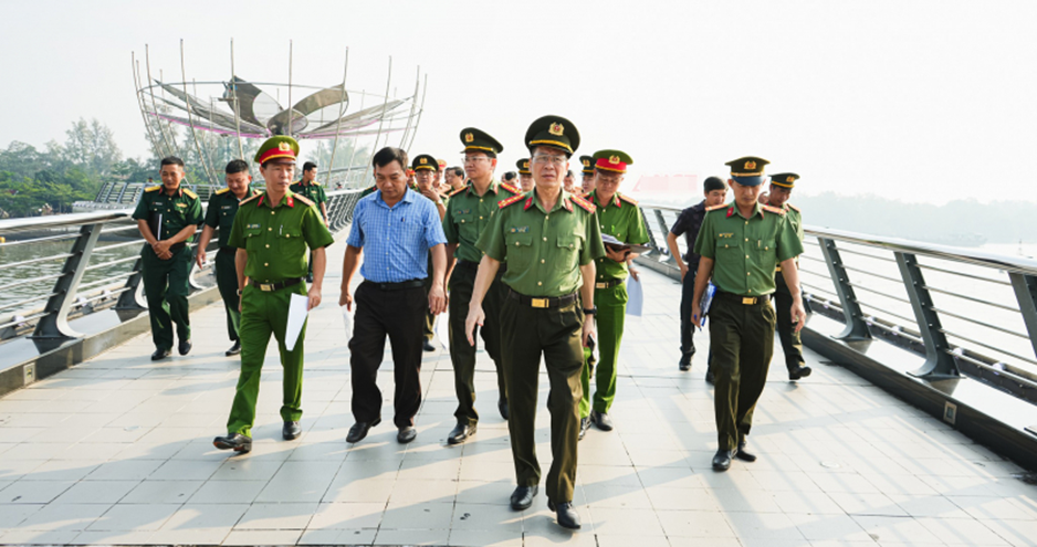 Đoàn công tác của Công an TP Cần Thơ do Đại tá Vũ Thành Thức, Phó Giám đốc Công an thành phố làm trưởng đoàn tổ chức khảo sát tại các địa điểm diễn ra hoạt động của lễ hội (Ảnh: Trang thông tin điện tử Công an TPCT)