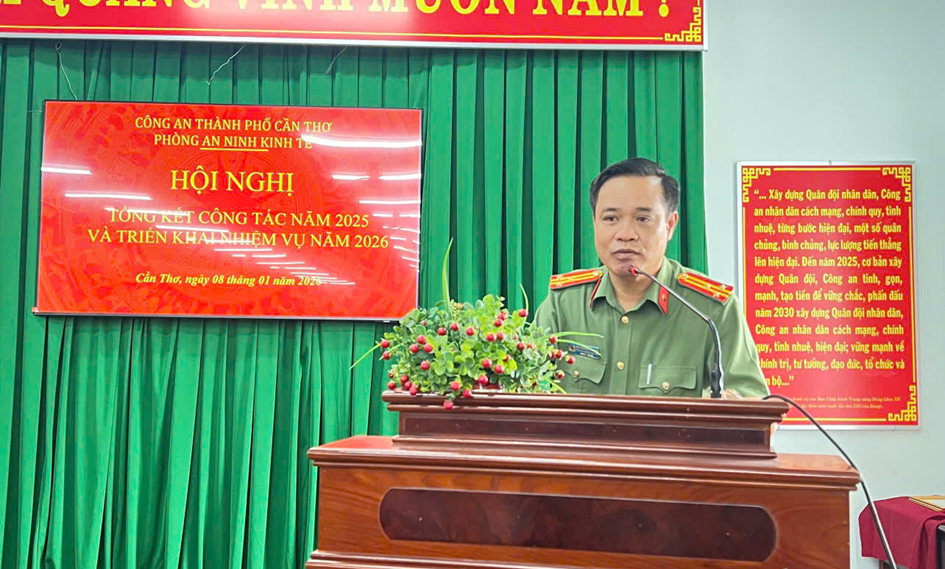Phát biểu kết luận Hội nghị, Thượng tá Lê Thái Hòa - Trưởng phòng ANKT yêu cầu toàn thể cán bộ, chiến sĩ nghiêm túc tiếp thu các ý kiến chỉ đạo và cụ thể hóa thành Chương trình công tác năm 2026; tiếp tục phát huy thành tích đạt được, khắc phục tồn tại, hạn chế; triển khai thực hiện hiệu quả Đề án “Đẩy mạnh xây dựng lực lượng Công an thành phố Cần Thơ thật sự trong sạch, vững mạnh, chính quy, tinh nhuệ, hiện đại, đáp ứng yêu cầu, nhiệm vụ trong tình hình mới”; phát động phong trào thi đua “Vì an ninh Tổ quốc” năm 2026 bám sát khẩu hiệu “Theo lời Bác dạy - Đổi mới tư duy, Nâng cao tri thức - Chính quy, hiện đại - Vì Đảng, vì dân” quyết tâm phấn đấu hoàn thành xuất sắc mọi nhiệm vụ được giao.