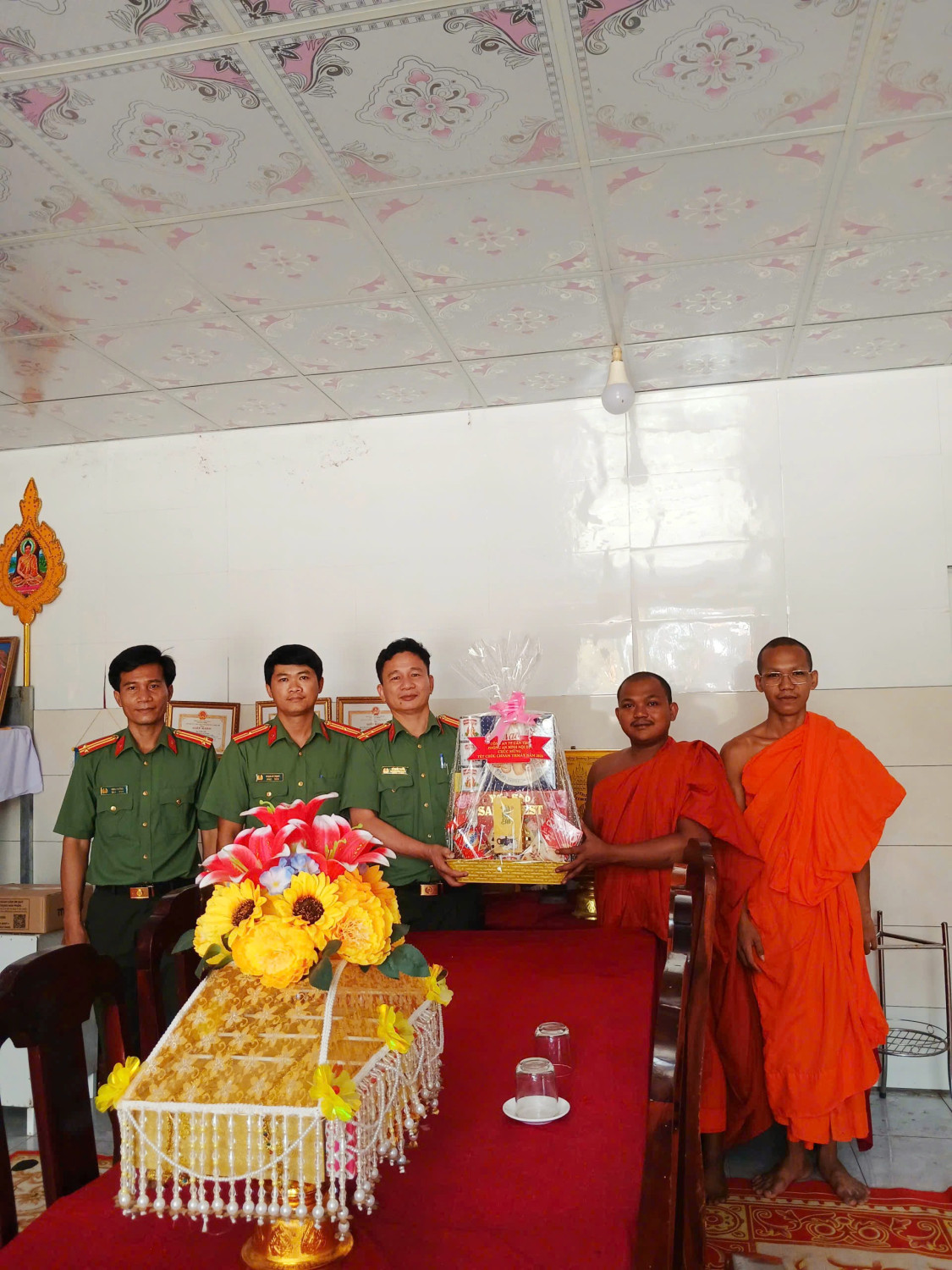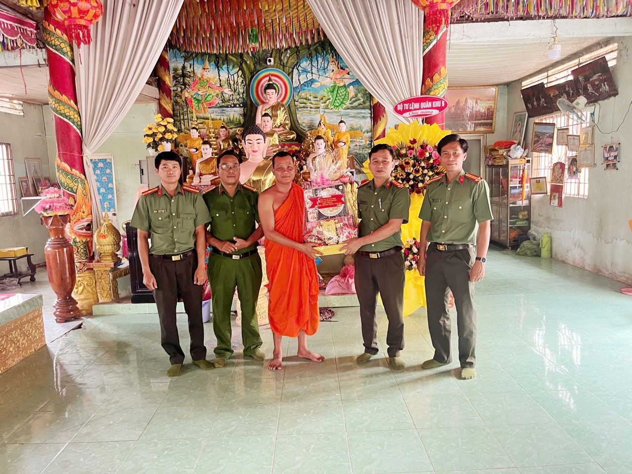 Đoàn công tác của Phòng An ninh nội địa thăm, tặng quà tại chùa Sasancrangsay, phường Vị Tân, thành phố Cần Thơ