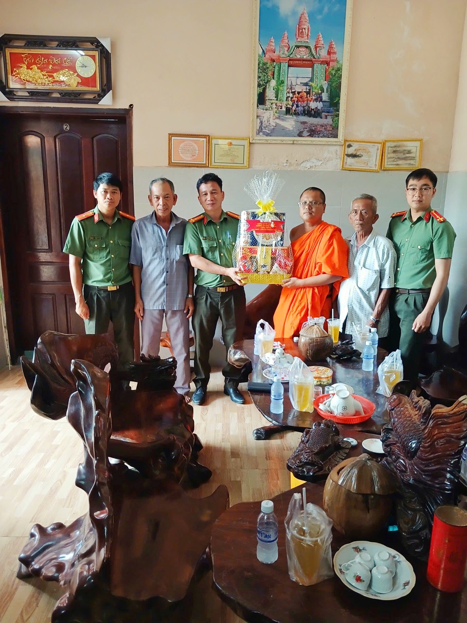 Đoàn công tác của Phòng An ninh nội địa thăm, tặng quà tại Chùa Pothiwonwongsa, xã Xà Phiên, thành phố Cần Thơ