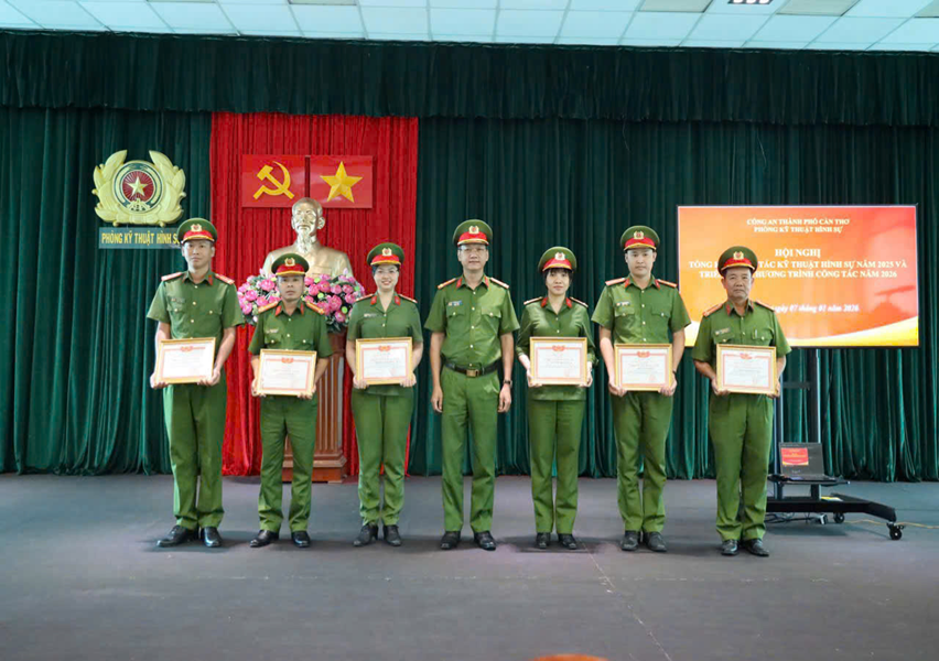 Sáng ngày 07/01, Phòng Kỹ thuật hình sự Công an thành phố Cần Thơ tổ chức Hội nghị tổng kết công tác năm 2025, triển khai nhiệm vụ công tác năm 2026. Hội nghị vinh dự được đồng chí Đại tá Bùi Đức An, Thủ trưởng Cơ quan Cảnh sát điều tra, Phó Giám đốc Công an thành phố Cần Thơ đến dự và chỉ đạo Hội nghị; cùng với sự tham dự của đại diện lãnh đạo Phòng Tham mưu Công an thành phố, tập thể lãnh đạo, chỉ huy và cán bộ, chiến sĩ Phòng Kỹ thuật hình sự.