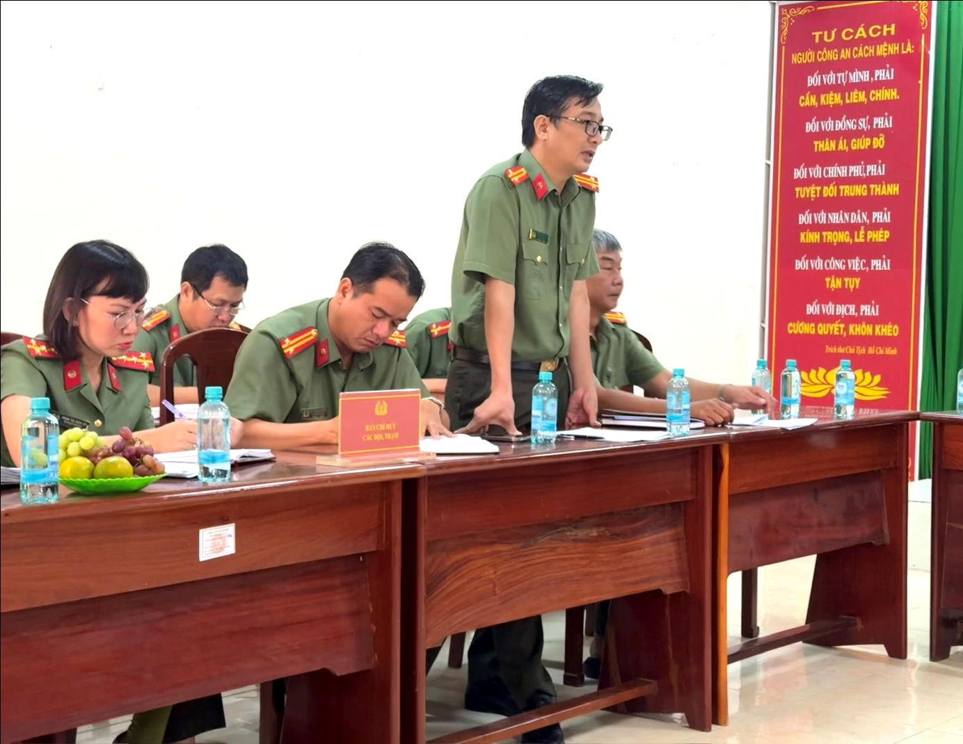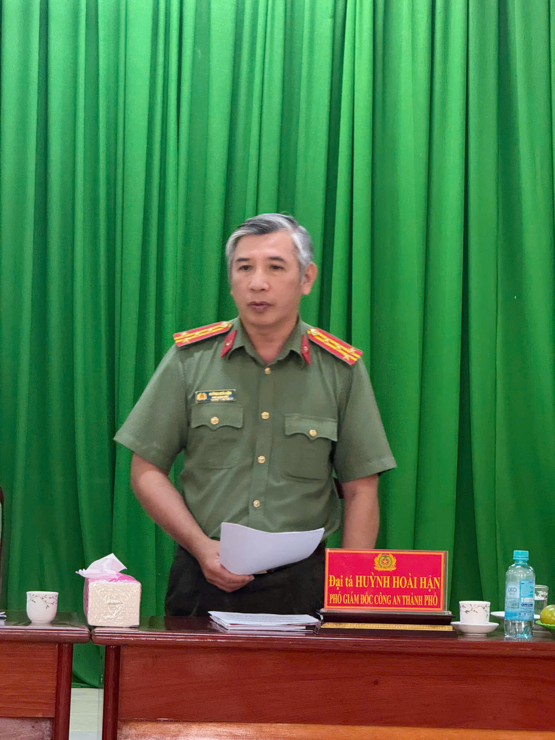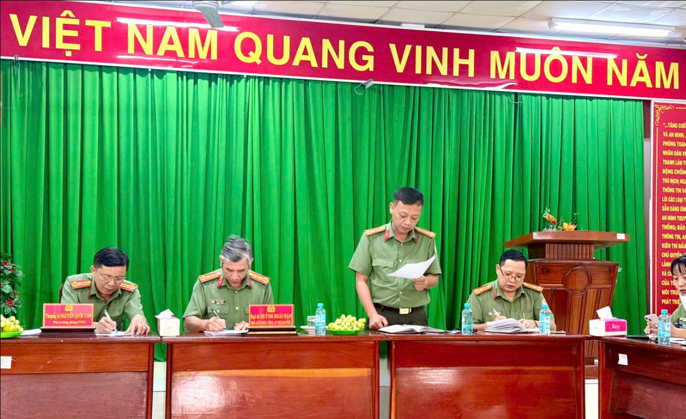 Đại tá Huỳnh Hoài Hận - Ủy viên Ban Thường vụ Đảng ủy, Phó Giám đốc Công an thành phố phát biểu chỉ đạo tại buổi làm việc. Ảnh: N.L.