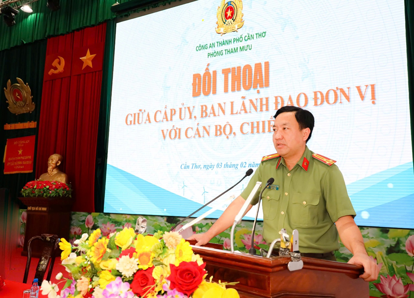 Đối thoại dân chủ, thẳng thắn, xây dựng tập thể trong sạch, vững mạnh Với tinh thần dân chủ, thẳng thắn, khách quan và xây dựng, Cấp ủy, Ban lãnh đạo Phòng đã trực tiếp đối thoại, giải đáp 17 câu hỏi, kiến nghị do 08 Đội và Trung tâm đặt ra, tập trung vào các nội dung sát thực tiễn công tác và đời sống của cán bộ, chiến sĩ; trong đó nổi bật là các nhóm vấn đề về công tác chuyên môn, chế độ chính sách, đời sống sau sáp nhập, công tác cán bộ, đào tạo - bồi dưỡng, chuyển đổi số (ngoại ngữ, tiếng Khmer/Hoa, công nghệ thông tin, ứng dụng AI, nâng chất “bình dân học vụ số”). Chương trình đối thoại không chỉ là dịp để giải đáp những khó khăn, vướng mắc, tâm tư của cán bộ, chiến sĩ, mà còn là dịp để toàn thể đảng viên, cán bộ, chiến sĩ Phòng Tham mưu bày tỏ quyết tâm hoàn thành tốt nhiệm vụ được giao. Đặc biệt, được sự gợi mở của đồng chí Bí thư Đảng ủy, có 04 ý kiến từ các Đội, Trung tâm chia sẻ kinh nghiệm công tác; kinh nghiệm học, tự học, tự bồi dưỡng; cách thức vượt qua khó khăn, thách thức để hoàn thành nhiệm vụ mà Đảng và Nhân dân giao phó.