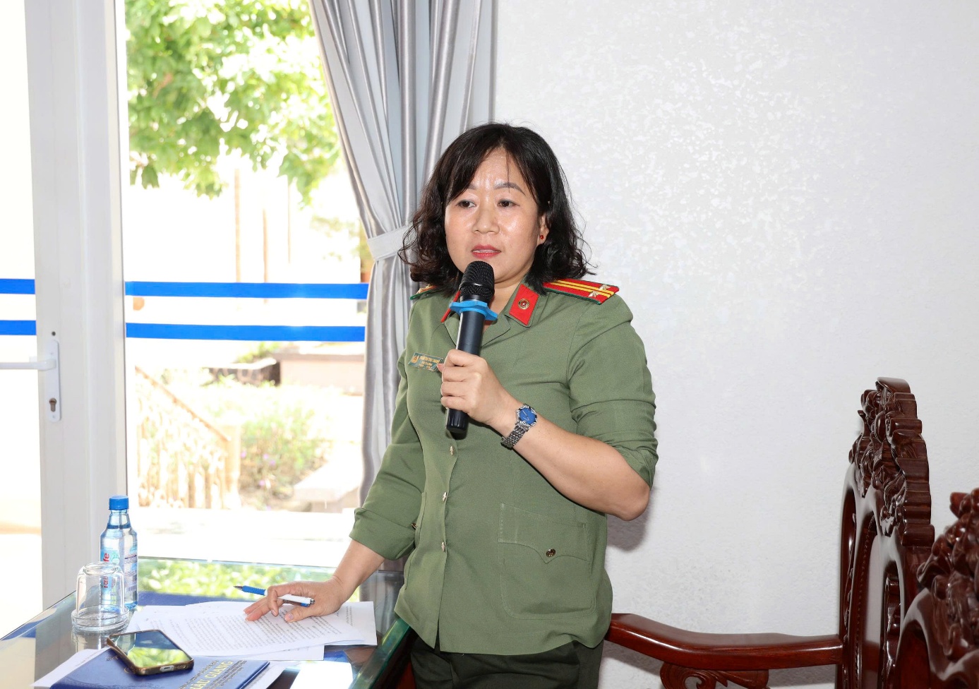 Đồng chí Thượng tá Trần Nguyễn Hòa Thơ, Bí thư Đảng ủy Phòng Tham mưu, phát biểu quán triệt và đối thoại với cán bộ, chiến sĩ