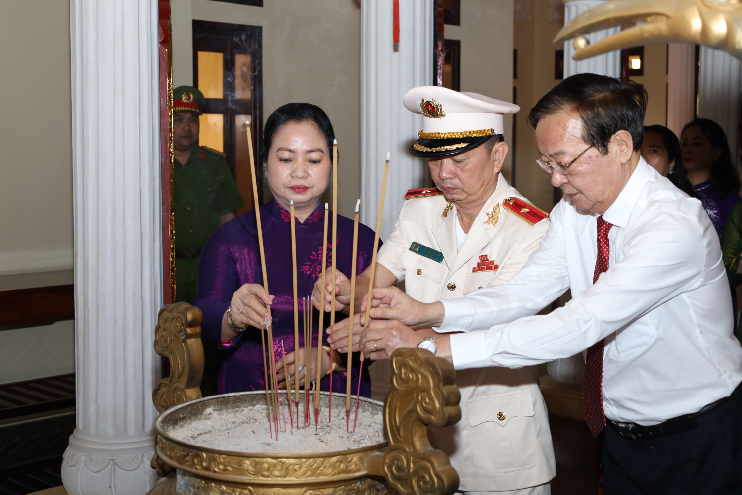 Thiếu tướng Huỳnh Việt Hòa, Ủy viên Ban Thường vụ Thành ủy, Giám đốc Công an thành phố dâng hương Đền thờ Chủ tịch Hồ Chí Minh tại xã Lương Tâm