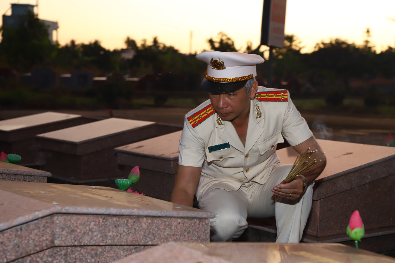 Đại tá Huỳnh Hoài Hận, Phó Giám đốc Công an thành phố thắp hương tại phần mộ liệt sĩ