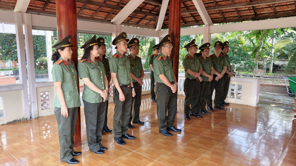 Lãnh đạo, cán bộ chiến sĩ Phòng Tham mưu; Chỉ huy, cán bộ Công an xã An Thạnh, Công an xã Cù Lao Dung dâng hương tại Đền thờ Bác Hồ, xã An Thạnh