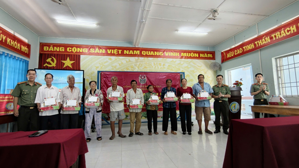 Tiếp đó, Chương trình sinh hoạt chính trị với chủ đề “Sáng mãi tinh thần Tham mưu” được tổ chức tại Công an xã Cù Lao Dung, nội dung tập trung ôn lại truyền thống vẻ vang của lực lượng; phân tích yêu cầu, nhiệm vụ trong tình hình mới; đồng thời chia sẻ nhiều kinh nghiệm thực tiễn trong công tác nắm tình hình, phân tích, dự báo và tham mưu xử lý các vấn đề phức tạp. Qua đó góp phần nâng cao bản lĩnh chính trị, tinh thần trách nhiệm, siết chặt kỷ luật, kỷ cương, đúng với tinh thần “Kỷ luật nhất”. Song song đó, các hoạt động an sinh xã hội và tuyên truyền pháp luật đã được triển khai sâu rộng. Đoàn đã tổ chức tuyên truyền pháp luật cho học sinh, nhân dân trên địa bàn gắn với thực hiện mô hình dân vận khéo “Ngày thứ Bảy pháp luật”, góp phần nâng cao nhận thức, kỹ năng sống và ý thức chấp hành pháp luật trong Nhân dân, đặc biệt là thanh thiếu niên. Tại buổi tuyên truyền, Phòng Tham mưu đã tặng 10 phần quà (trị giá 8 triệu đồng) cho 10 hộ dân có hoàn cảnh khó khăn, gia đình chính sách trên địa bàn xã Cù Lao Dung. Những phần quà tuy giá trị không lớn nhưng chứa đựng tình cảm, trách nhiệm của cán bộ, chiến sĩ, thể hiện sâu sắc tinh thần “gần dân, sát dân, vì Nhân dân phục vụ”, lan tỏa mạnh mẽ hình ảnh đẹp của lực lượng Công an nhân dân trong lòng Nhân dân với tinh thần “Gần dân nhất”.