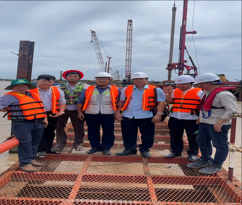 Đoàn chụp ảnh lưu niệm tại công trường Cầu Đại Ngãi 1