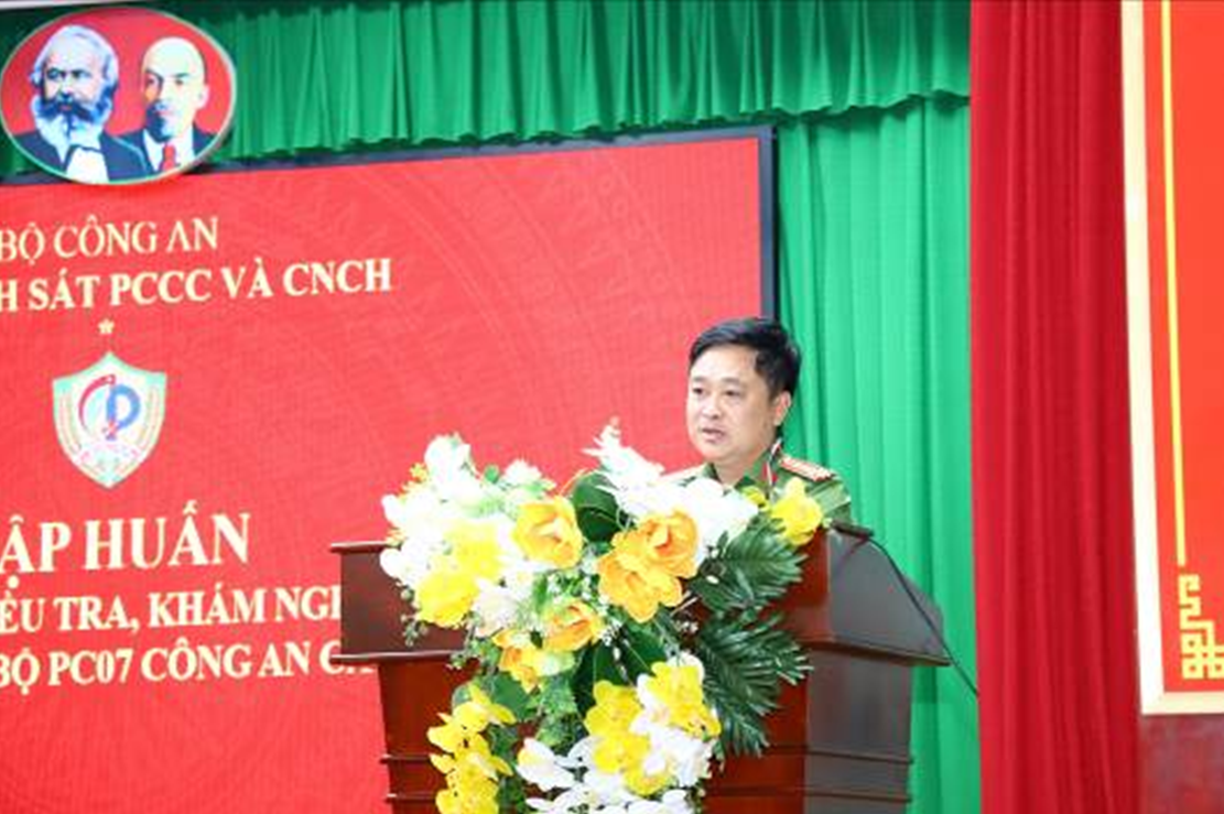 Phát biểu khai giảng lớp tập huấn, Thiếu tướng Huỳnh Thới An, Phó Cục trưởng Cục Cảnh sát PCCC và CNCH nhấn mạnh, hoạt động điều tra giải quyết cháy, nổ được lãnh đạo Bộ quan tâm, chỉ đạo sát sao, hệ thống văn bản quy phạm pháp luật về điều tra cháy, nổ được xây dựng mới, bổ sung hoàn thiện đáp ứng yêu cầu nhiệm vụ trong tình hình mới. Lớp tập huấn nhằm để quán triệt quy định của pháp luật về tổ chức điều tra cháy nổ, nâng cao trình độ năng lực, kỹ chiến thuật trong hoạt động thu thập tài liệu, khám nghiệm hiện trường đối với các vụ cháy của Điều tra viên, cán bộ điều tra, góp phần khắc phục những tồn tại, bất cập, nhất là do thay đổi về tổ chức bộ máy chính quyền địa phương 02 cấp. Đồng chí Phó Cục trưởng đề nghị các đồng chí giảng viên đặc biệt quan tâm truyền đạt những vấn đề mới, sát với thực tiễn điều tra, khám nghiệm hiện trường các vụ cháy; các học viên tham gia tập huấn phải học tập nghiêm túc, chấp hành nghiêm điều lệnh CAND; tuân thủ các quy định của lớp học, yêu cầu của giảng viên và điều kiện an toàn khi thực hành khám nghiệm hiện trường. Sau khi kết thúc tập huấn tiếp tục nghiên cứu, phổ biến các kiến thức đã tiếp thu được cho các đồng chí có nhiệm vụ liên quan công tác điều tra, khám nghiệm hiện trường của đơn vị để không ngừng vững vàng về chuyên môn, nghiệp vụ và hoàn thành tốt nhiệm vụ được giao.