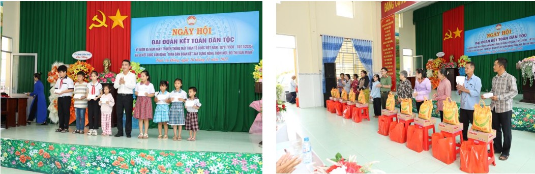 Ban Tổ chức tặng quà cho học sinh và người dân tại ngày hội