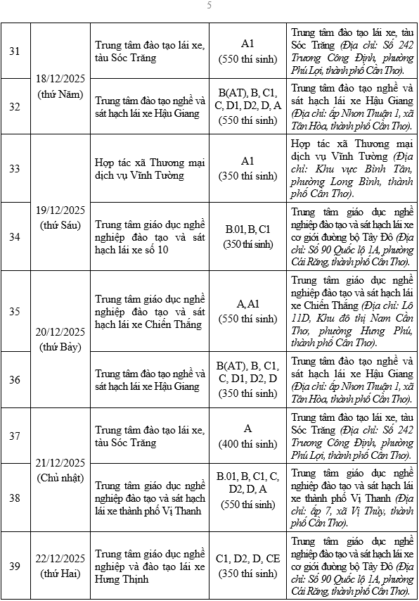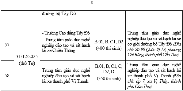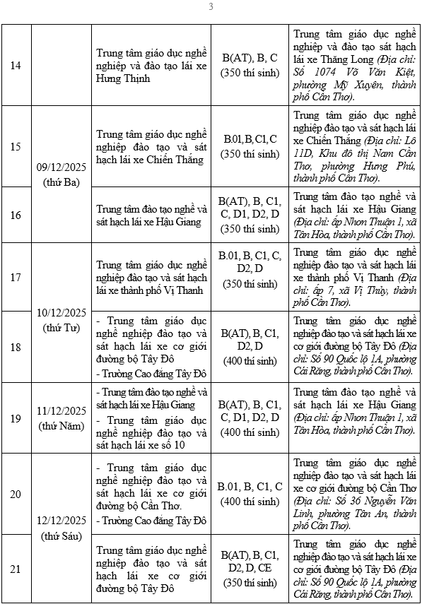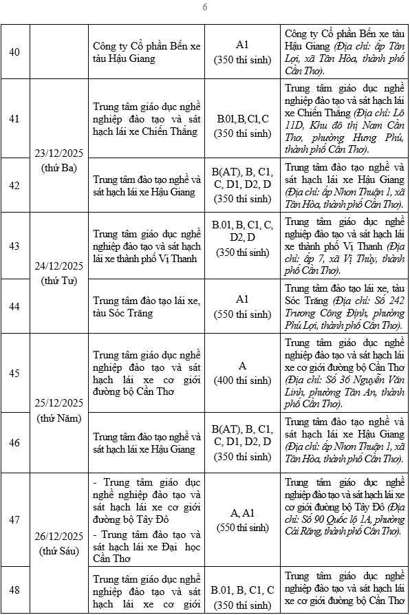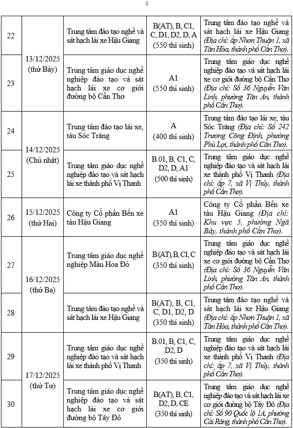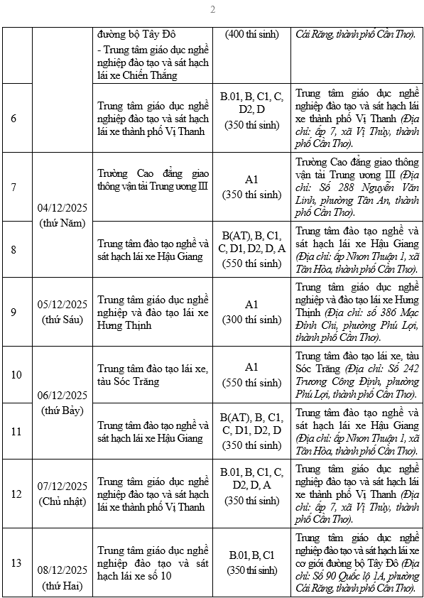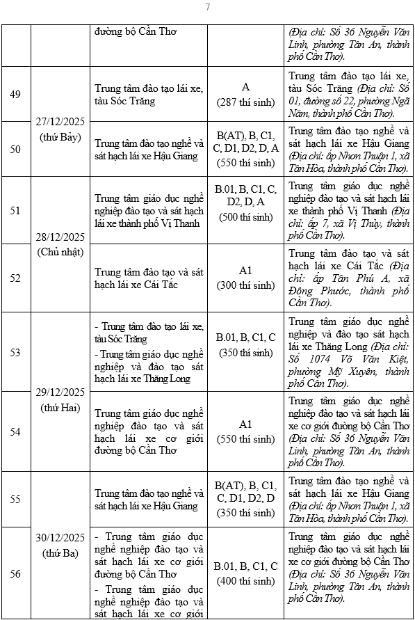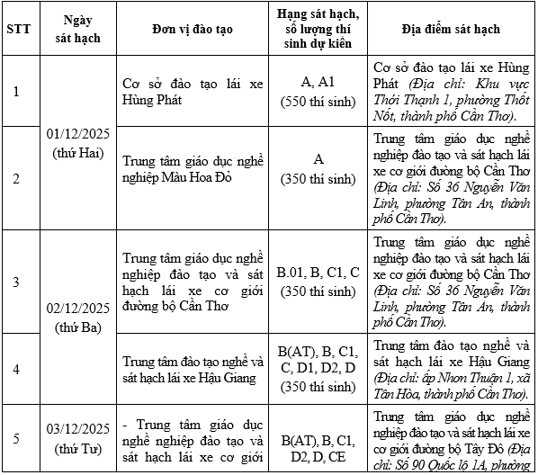 Thông báo Lịch sát hạch lái xe cơ giới đường bộ tháng 12/2025.