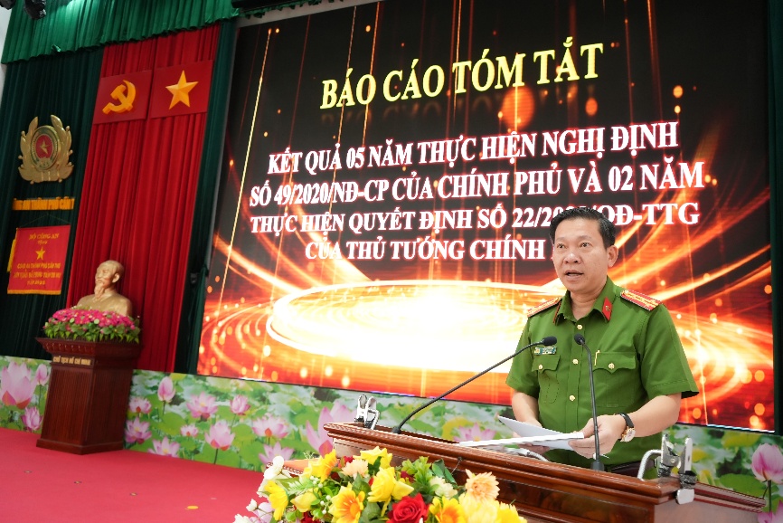 Đại tá Trần Hoàng Độ, Phó Giám đốc Công an thành phố thông qua báo cáo tóm tắt tại Hội nghị