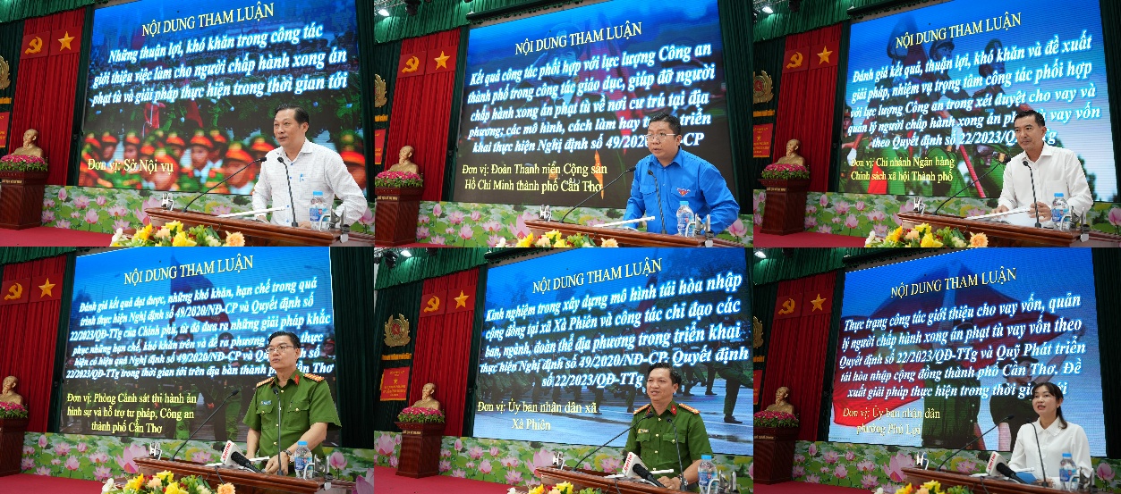 Hội nghị đã lắng nghe các ý kiến, phát biểu tham luận của các sở, ngành và địa phương trong thực hiện công tác đảm bảo tái hòa nhập cộng đồng đối với người chấp hành xong án phạt tù trở về địa phương cư trú. Theo đó, các đơn vị đã chủ động trong công tác tham mưu Ủy ban nhân dân thành phố thực hiện tốt chính sách đối với nhóm đối tượng này.