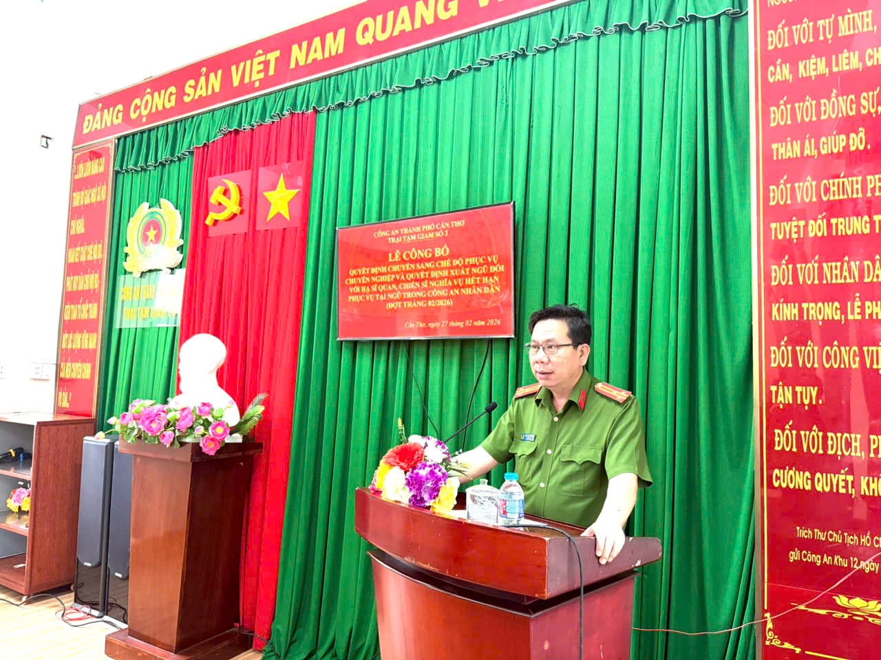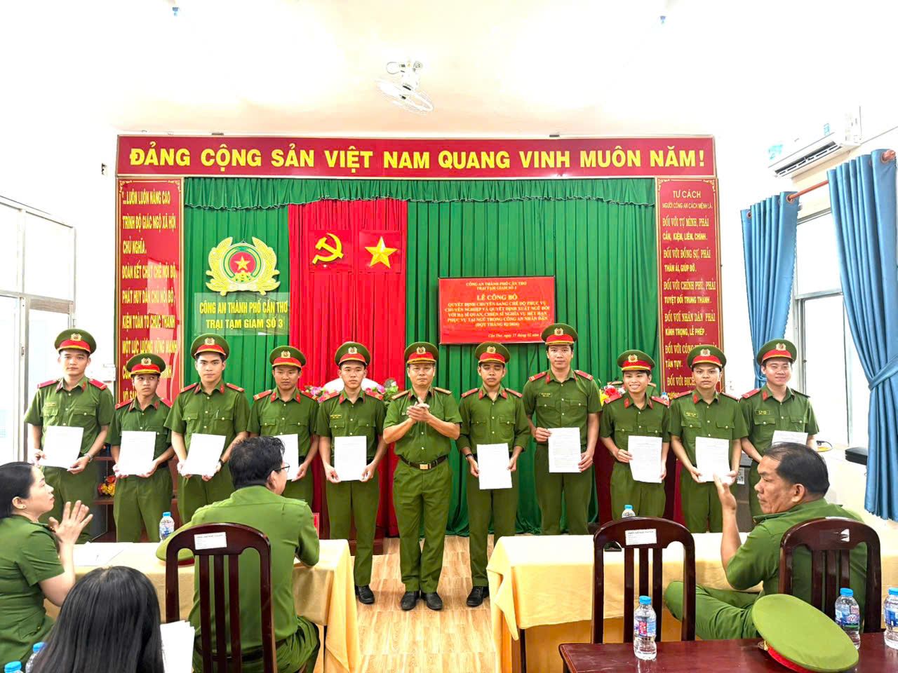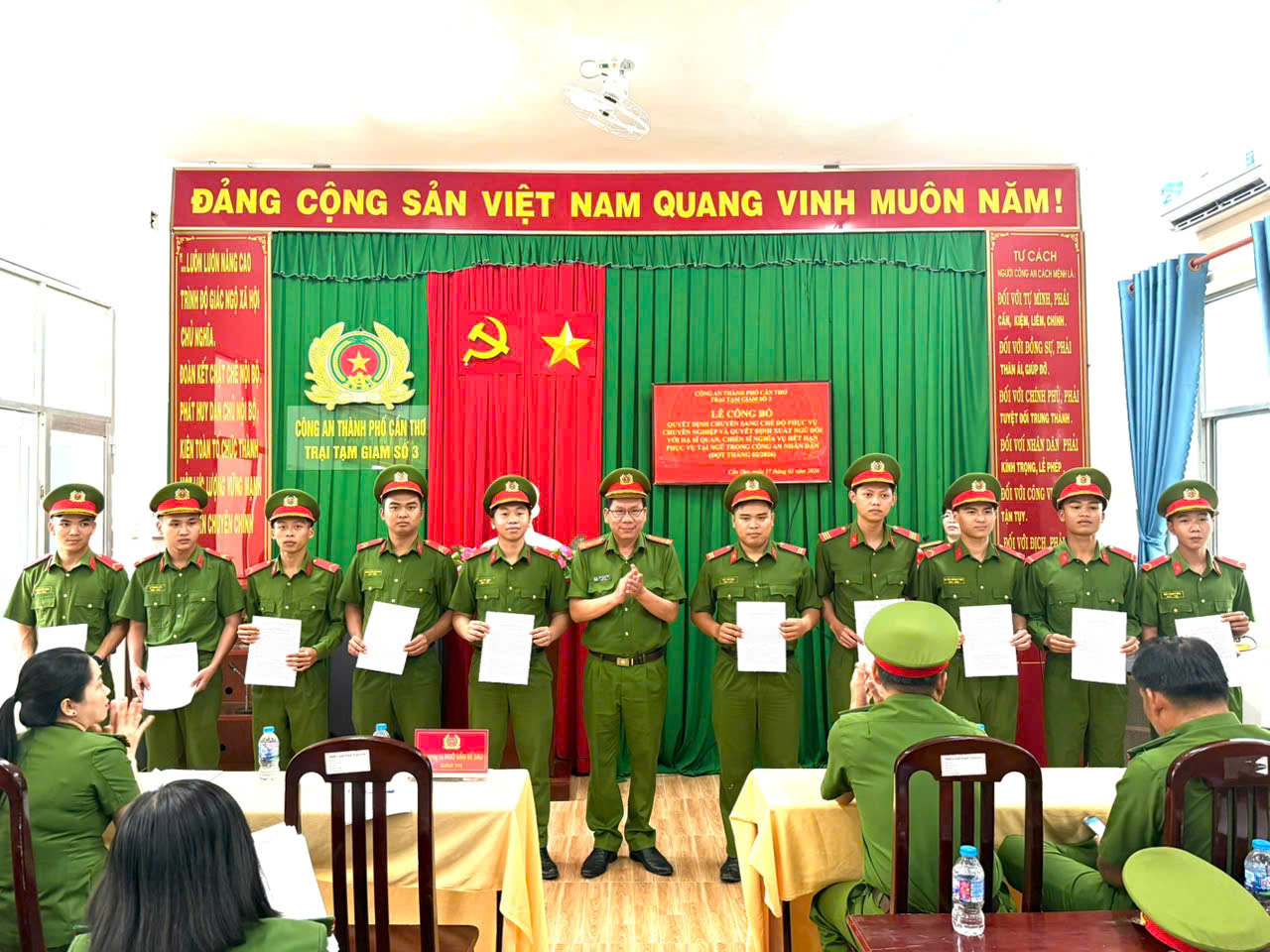 Lễ Công bố Quyết định được tổ chức trang trọng, đúng nghi thức Điều lệnh Công an nhân dân, bảo đảm chặt chẽ, chu đáo. Buổi lễ khép lại trong không khí trang nghiêm, xúc động, thể hiện sự quan tâm của Đảng ủy, Ban Giám thị đơn vị đối với cán bộ, chiến sĩ; đồng thời tiếp tục khẳng định vai trò, trách nhiệm của Trại Tạm giam số 3 trong công tác quản lý, giáo dục, rèn luyện chiến sĩ, góp phần xây dựng lực lượng Công an thành phố Cần Thơ ngày càng trong sạch, vững mạnh./.