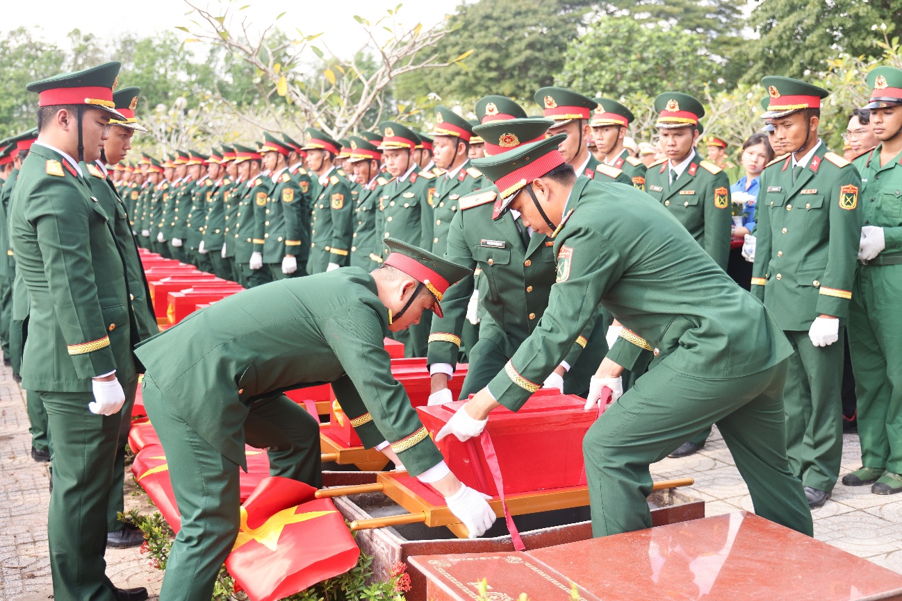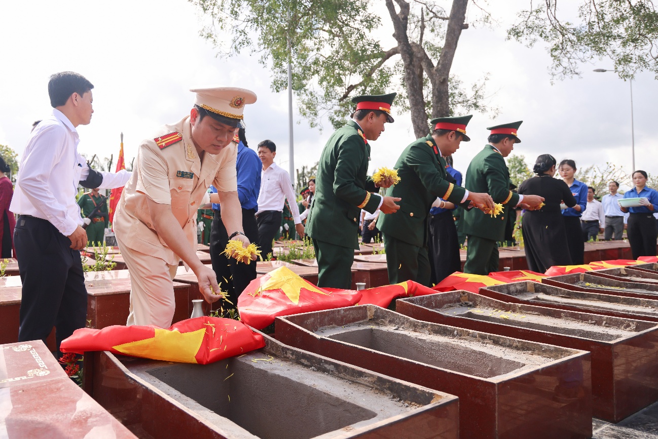 Trong không khí trang nghiêm, các đại biểu đã dâng hương, dâng hoa tưởng niệm, bày tỏ lòng tri ân sâu sắc đối với những chiến sĩ đã anh dũng chiến đấu, hy sinh vì độc lập, tự do của Tổ quốc, vì hạnh phúc của Nhân dân. Phát biểu tại buổi lễ, ông Nguyễn Văn Khởi khẳng định: Đảng, Nhà nước và Nhân dân luôn trân trọng, ghi nhớ công lao to lớn của các anh hùng liệt sĩ; đồng thời đề nghị các địa phương, đơn vị tiếp tục đẩy mạnh công tác rà soát, khảo sát, tìm kiếm, quy tập hài cốt liệt sĩ, hướng đến mục tiêu “không còn hài cốt liệt sĩ chưa được quy tập trên địa bàn”.