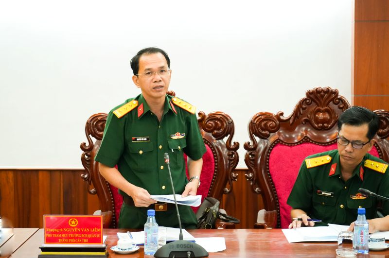Thượng tá Nguyễn Văn Liêm, Phó Tham mưu trưởng BCH quân sự thành phố Cần Thơ phát biểu đóng góp ý kiến tại cuộc họp
