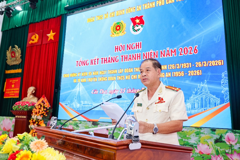 Phát biểu chỉ đạo tại hội nghị, Đại tá Nguyễn Thanh Tràng, Thành ủy viên, Phó Bí thư Đảng ủy, Phó Giám đốc Công an thành phố Cần Thơnhấn mạnh, Hội nghị tổng kết Tháng Thanh niên năm 2026 được tổ chức trong không khí phấn khởi chào mừng nhiều sự kiện chính trị quan trọng của đất nước, đồng thời ôn lại truyền thống vẻ vang 95 năm của Đoàn Thanh niên Cộng sản Hồ Chí Minh và 70 năm truyền thống Đoàn Thanh niên Cộng sản Hồ Chí Minh Bộ Công an - lực lượng luôn xung kích, tiên phong trên các mặt trận bảo đảm an ninh quốc gia, giữ gìn trật tự, an toàn xã hội. Đồng chí ghi nhận, biểu dương những kết quả nổi bật của tuổi trẻ Công an thành phố trong Tháng Thanh niên năm 2026, nhất là vai trò xung kích trong hỗ trợ chuyển đổi số, tham gia bảo đảm an ninh trật tự, phục vụ thành công cuộc bầu cử đại biểu Quốc hội khóa XVI và bầu cử đại biểu Hội đồng nhân dân các cấp nhiệm kỳ 2026 - 2031, cũng như triển khai hiệu quả các hoạt động an sinh xã hội, giáo dục truyền thống, tạo sức lan tỏa tích cực trong cộng đồng.