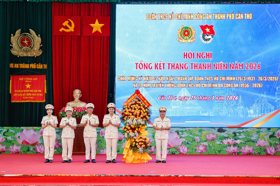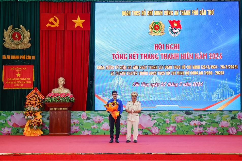 Chiều 25/3, Công an thành phố Cần Thơ tổ chức Hội nghị tổng kết Tháng Thanh niên năm 2026, nhằm đánh giá toàn diện kết quả triển khai các mặt công tác đoàn và phong trào thanh niên trong Công an thành phố. Đại tá Nguyễn Thanh Tràng, Thành ủy viên, Phó Bí thư Đảng ủy, Phó Giám đốc Công an thành phố Cần Thơ dự và chỉ đạo hội nghị; cùng dự có Đồng chí Nguyễn Hữu Nghĩa, Phó Bí thư thường trực Thành đoàn Cần Thơ cùng đoàn viên, hội viên, thanh niên trong lực lượng.