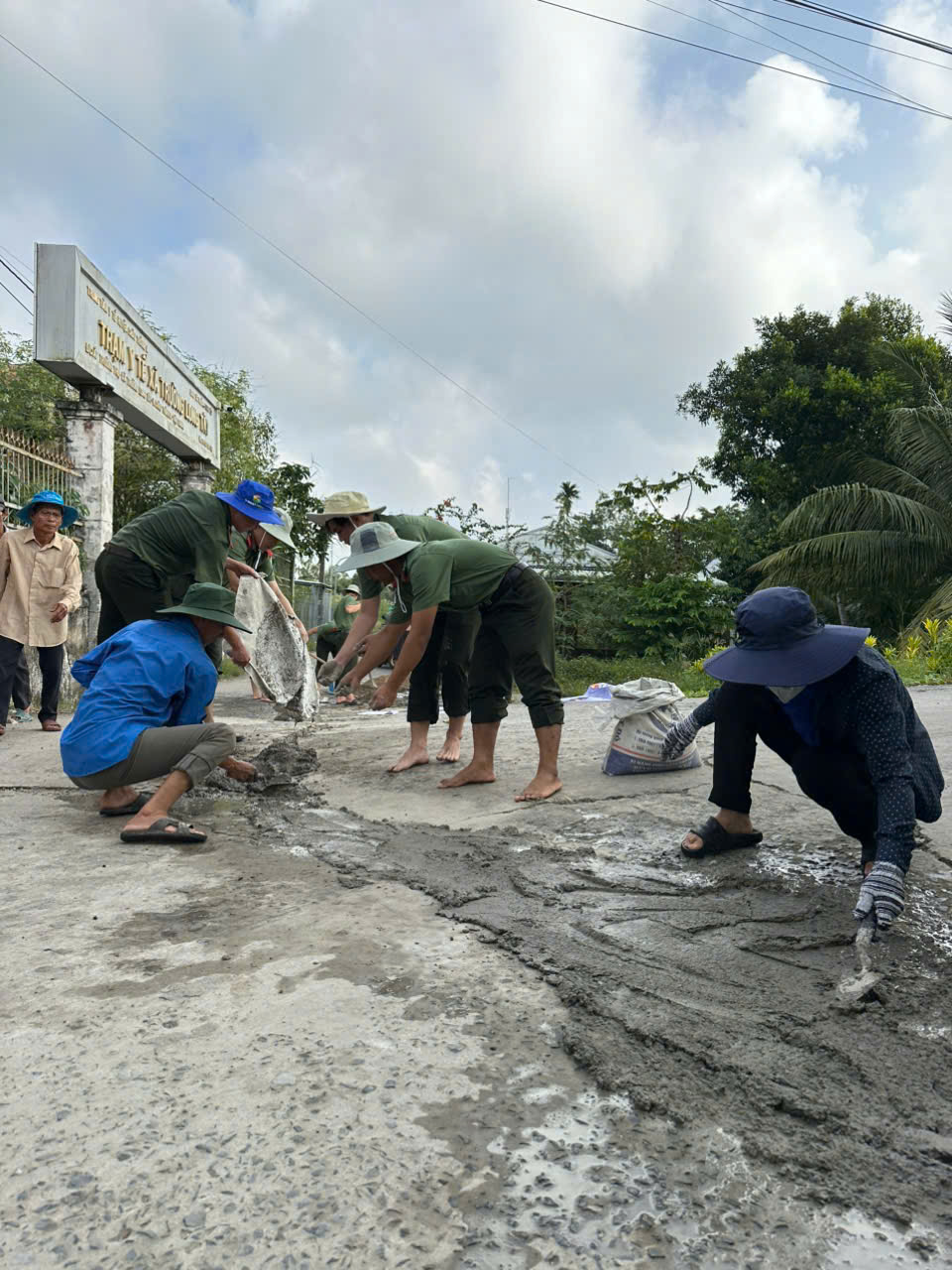 Đoàn viên thanh niên Chi đoàn Phòng An ninh điều tra phối hợp thực hiện công trình “Dặm vá lộ giao thông nông thôn” trên địa bàn xã Trường Long Tây