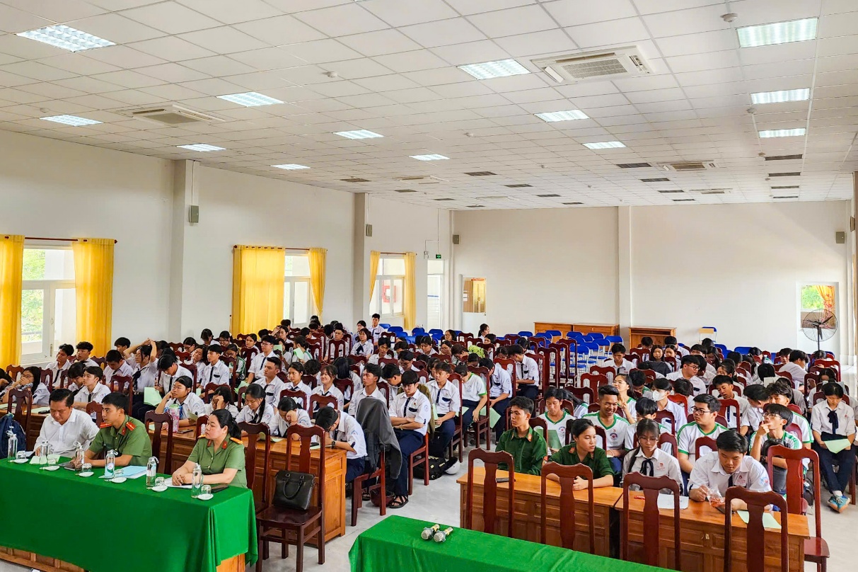 Tham gia buổi tuyên truyền có khoảng 200 học sinh các khối lớp 10, 11, 12. Tại đây, các em được phổ biến cụ thể, chi tiết về đối tượng, điều kiện dự tuyển; phương thức tuyển sinh; tiêu chuẩn chính trị, đạo đức, sức khỏe; quy trình đăng ký và xét tuyển vào các trường Công an nhân dân. Những nội dung này được truyền đạt một cách rõ ràng, dễ hiểu, giúp học sinh hình dung đầy đủ về yêu cầu cũng như lộ trình phấn đấu nếu mong muốn trở thành chiến sĩ Công an nhân dân.