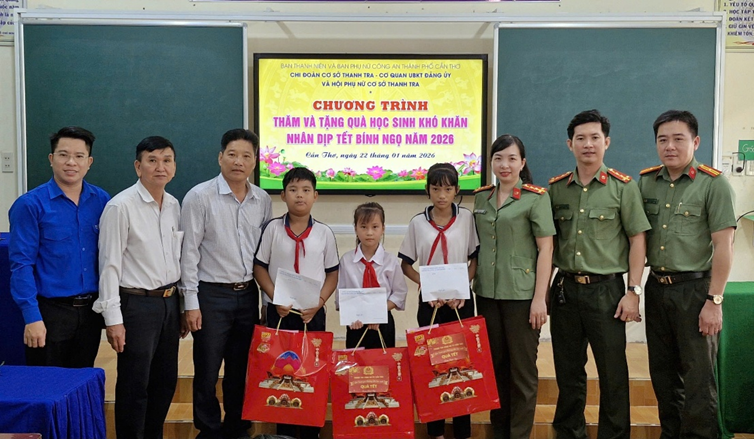 Hòa trong không khí phấn khởi, ấm áp trước thềm năm mới – Tết Nguyên đán Bính Ngọ năm 2026, chào mừng Đại hội đại biểu toàn quốc lần thứ XIV của Đảng Cộng sản Việt Nam, Thanh tra Công an thành phố Cần Thơ đã thiết thực hưởng ứng phong trào thi đua Ba nhất: “Kỷ luật nhất – Trung thành nhất – Gần dân nhất” và mô hình “Thanh tra Công an thành phố ba nhất: chuẩn mực, liêm chính, vì Nhân dân” bằng những hoạt động an sinh xã hội mang ý nghĩa nhân văn sâu sắc. Ngày 22/01/2026, được sự chấp thuận của Đảng ủy Thanh tra Công an thành phố, Chi đoàn cơ sở Thanh tra – Cơ quan Ủy ban kiểm tra Đảng ủy Công an thành phố phối hợp với Hội Phụ nữ cơ sở Thanh tra Công an thành phố đã tổ chức thăm hỏi, tặng quà và trao kinh phí hỗ trợ cho các em học sinh có hoàn cảnh khó khăn tại xã Hỏa Lựu, thành phố Cần Thơ. Đây là hoạt động thiết thực trong chuỗi hoạt động thi đua chào mừng Đại hội XIV của Đảng, thể hiện rõ tinh thần trách nhiệm xã hội, nghĩa tình của lực lượng Thanh tra Công an đối với cộng đồng.