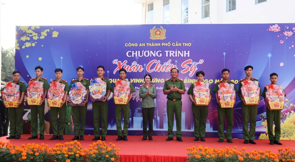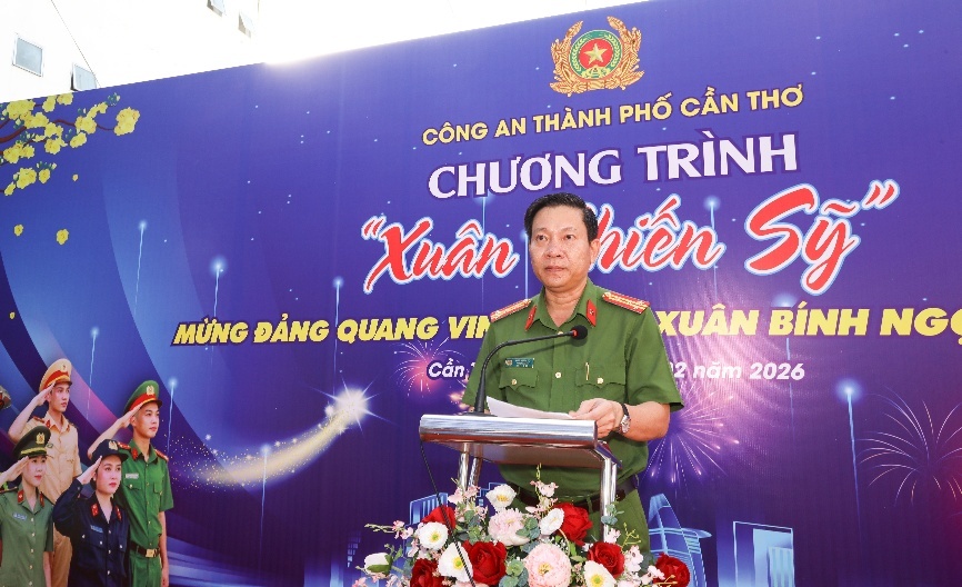 Trong không khí ấm áp của những ngày đầu Xuân Bính Ngọ 2026, sáng 12/02, Công an thành phố Cần Thơ khai mạc chương trình “Xuân chiến sĩ - Mừng Đảng quang vinh, mừng Xuân Bính Ngọ 2026” cho hơn 450 cán bộ, chiến sĩ nghĩa vụ trong lực lượng Công an thành phố. Tham dự có đồng chí Lư Thị Ngọc Anh, Ủy viên Ban Thường vụ Trung ương Đoàn, Thành ủy viên, Phó Chủ tịch Ủy ban Mặt trận Tổ quốc Việt Nam thành phố, Bí thư Thành Đoàn; Đại tá Trần Hoàng Độ, Phó Giám đốc Công an thành phố cùng đại diện lãnh đạo các đơn vị nghiệp vụ trong Công an thành phố và các đơn vị đồng hành, hỗ trợ.