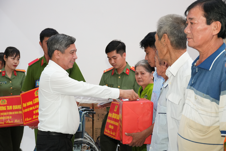 Đồng chí Thượng tướng Phạm Thế Tùng, Ủy viên Ban Chấp hành Trung ương Đảng, Thứ trưởng Bộ Công an trao tặng 1.000 suất quà Tết