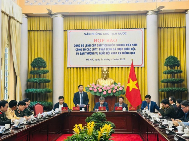 Chiều ngày 31/12/2025, tại Hà Nội, Văn phòng Chủ tịch nước đã tổ chức họp báo công bố lệnh của Chủ tịch nước về công bố 14 luật và 1 pháp lệnh được Quốc hội, Ủy ban Thường vụ Quốc hội khóa XV thông qua.