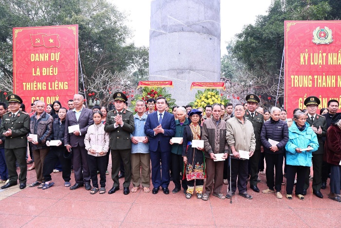 Nhân dịp này, Đảng ủy Công an Trung ương, Bộ Công an tổ chức chương trình thăm hỏi, tặng quà các gia đình chính sách, người có công với cách mạng và các hộ gia đình có hoàn cảnh khó khăn trên địa bàn xã Minh Thanh và xã Tân Trào. Thay mặt Đảng ủy Công an Trung ương, lãnh đạo Bộ Công an, Thứ trưởng Lê Quốc Hùng ân cần gửi lời chúc mừng năm mới tới các đồng chí lãnh đạo tỉnh Tuyên Quang và toàn thể bà con Nhân dân trên địa bàn tỉnh.