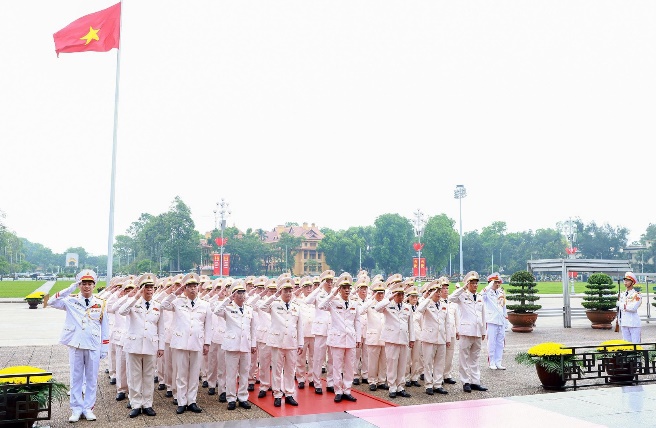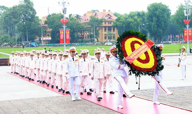 Đoàn Đại biểu Đảng ủy Công an Trung ương, Bộ Công an đặt vòng hoa, vào Lăng viếng Chủ tịch Hồ Chí Minh.