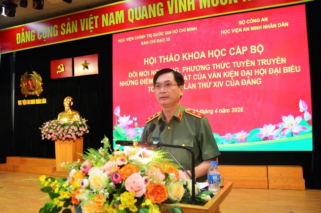 Chiều 24/4/2026, tại Hà Nội, Ban chỉ đạo 35 Học viện Chính trị Quốc gia Hồ Chí Minh phối hợp với Học viện An ninh nhân dân (ANND) tổ chức Hội thảo khoa học cấp Bộ “Đổi mới nội dung, phương thức tuyên truyền những điểm mới nổi bật của Văn kiện Đại hội đại biểu toàn quốc lần thứ XIV của Đảng”.