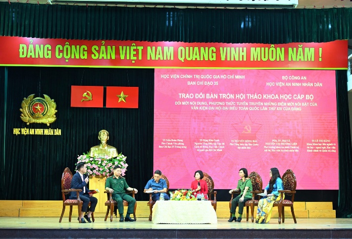 Dưới sự điều hành của Đại tá, GS.TS Nguyễn Trường Thọ, Phó Giám đốc Học viện ANND, các ý kiến tại Hội thảo đã tập trung làm rõ về những điểm mới mang tính bản lề, quyết định trong Văn kiện Đại hội lần thứ XIV của Đảng để đưa đất nước bước vào "Kỷ nguyên phát triển mới của dân tộc". Đặc biệt, các ý kiến cũng đã đi sâu vào việc tìm lời giải cho bài toán: Làm thế nào để đổi mới phương thức tuyên truyền đảm bảo tính đa dạng, thực chất và thuyết phục, nhất là trong bối cảnh kỷ nguyên số nhằm giúp nội dung Văn kiện "thẩm thấu" vào đời sống, lan tỏa mạnh mẽ đến mọi tầng lớp Nhân dân.
