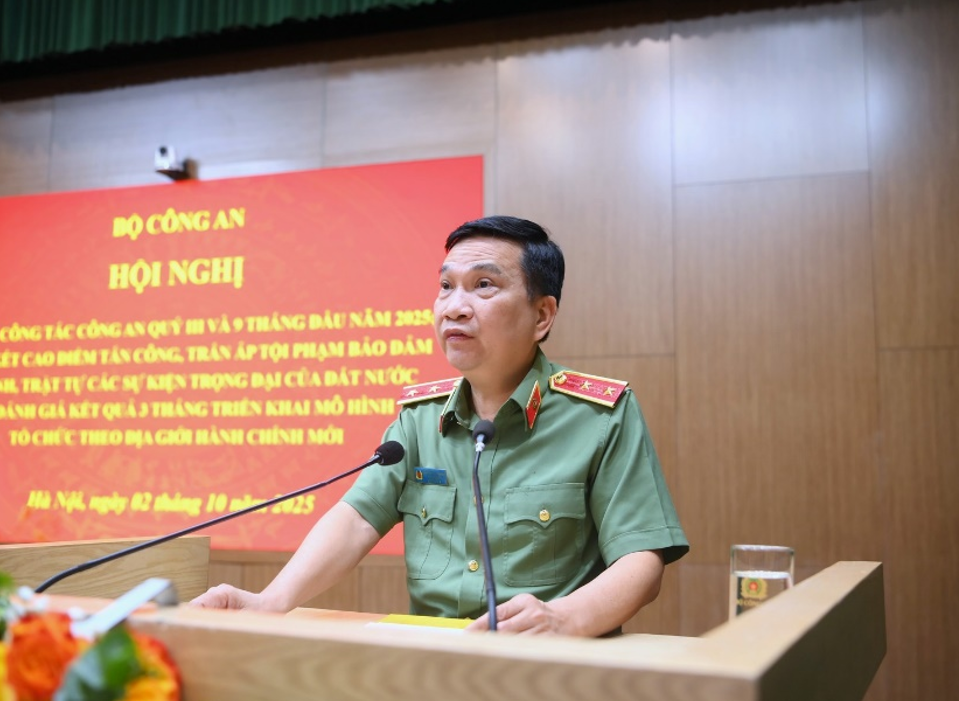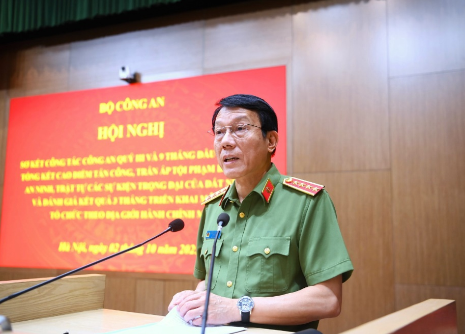 Ngày 02/10/2025, tại Hà Nội, Đại tướng Lương Tam Quang, Uỷ viên Bộ Chính trị, Bí thư Đảng uỷ Công an Trung ương (CATW), Bộ trưởng Bộ Công an chủ trì Hội nghị sơ kết công tác công an Quý III và 9 tháng đầu năm 2025; Tổng kết cao điểm tấn công, trấn áp tội phạm bảo đảm an ninh, trật tự (ANTT) các sự kiện trọng đại của đất nước và đánh giá kết quả 3 tháng triển khai mô hình tổ chức theo địa giới hành chính mới.