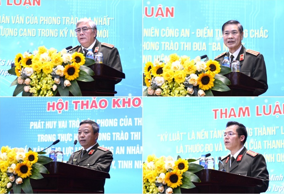 Tại Hội thảo, nhiều ý kiến sâu sắc, tâm huyết, cách tiếp cận mới của các nhà khoa học và cán bộ, đoàn viên, thanh niên đã làm sáng rõ hơn cơ sở lý luận và thực tiễn của việc phát huy vai trò tiên phong của thanh niên CAND trong thực hiện phong trào thi đua “Ba nhất”, góp phần xây dựng lực lượng CAND chính quy, tinh nhuệ, hiện đại. Đồng thời, nhiều đại biểu cũng đề xuất các giải pháp thiết thực, khả thi nhằm xây dựng thanh niên CAND thời kỳ mới, đủ phẩm chất, năng lực, bản lĩnh để kế tục xứng đáng sự nghiệp bảo vệ an ninh, trật tự của đất nước trong kỷ nguyên mới… Phát biểu tại Hội thảo, Thiếu tướng Ngô Hoài Thu khẳng định, các tham luận trực tiếp cũng như các bài viết của các chuyên gia, nhà khoa học, tổ chức Đoàn Công an các đơn vị, địa phương được gửi về hội thảo là nguồn tư liệu hết sức có giá trị, xây dựng nền tảng về lý luận, cơ sở khoa học, thực tiễn về phong trào thi đua “Ba nhất”, góp phần quan trọng thống nhất nhận thức và tổ chức triển khai các nhiệm vụ, giải pháp thực hiện phong trào “Ba nhất” trong toàn Đoàn.