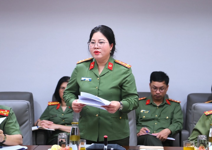 Đại tá Nguyễn Thanh Vân, Giám đốc Bệnh viện YHCT Bộ Công an báo cáo tại buổi làm việc.