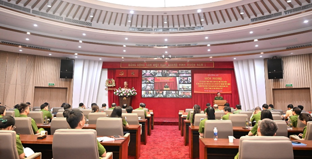Hội nghị được truyền hình trực tuyến đến Hội trường Công an các tỉnh, thành phố và kết nối đến Công an cấp xã.