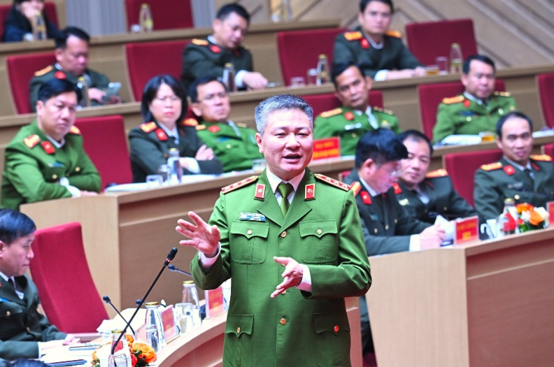 Thứ trưởng Nguyễn Ngọc Lâm giải đáp các ý kiến phát biểu của lãnh đạo Công an các đơn vị, địa phương.