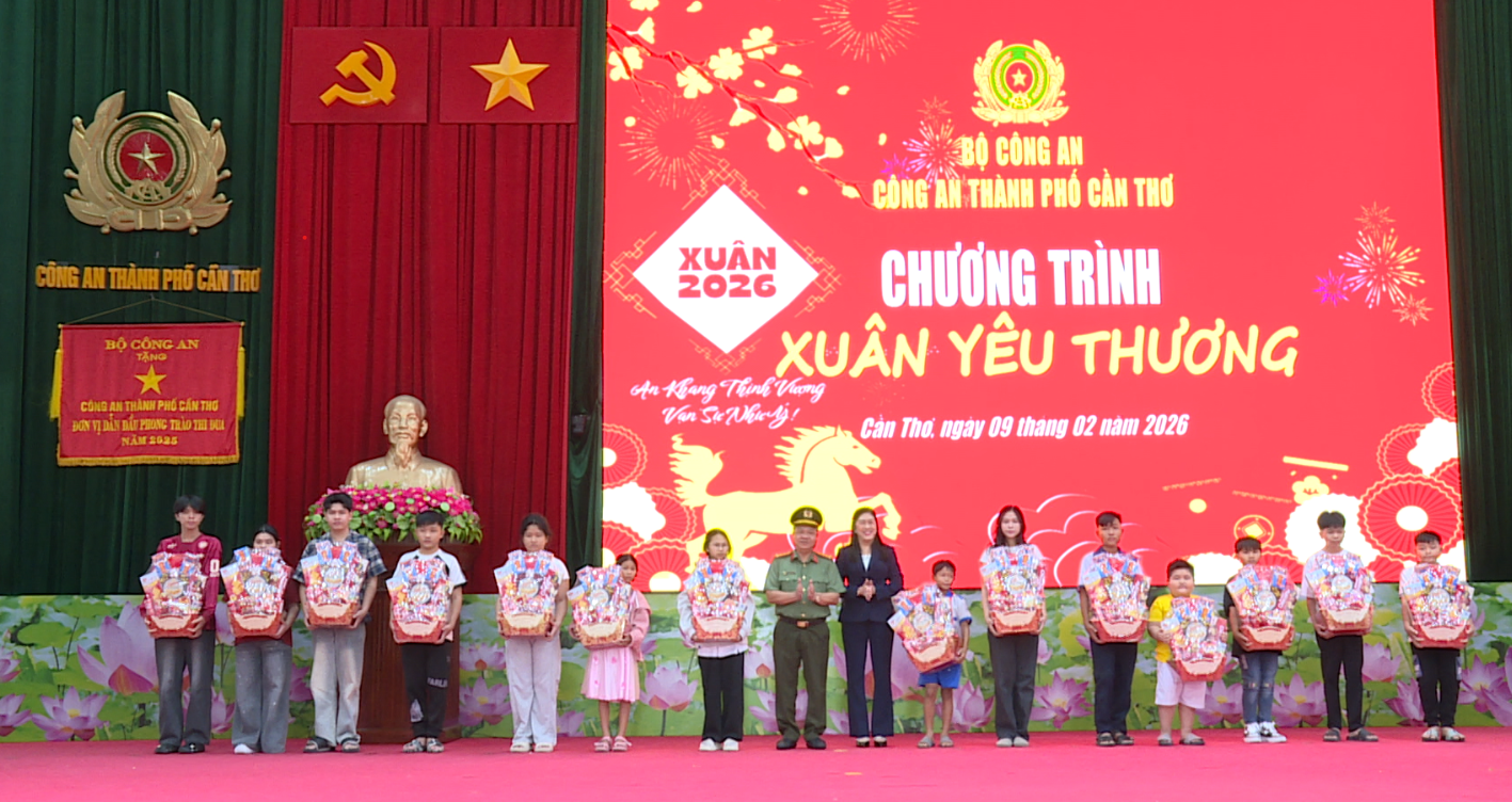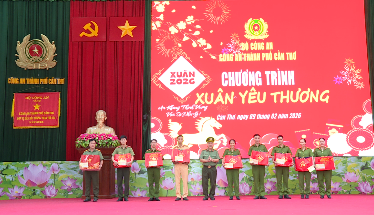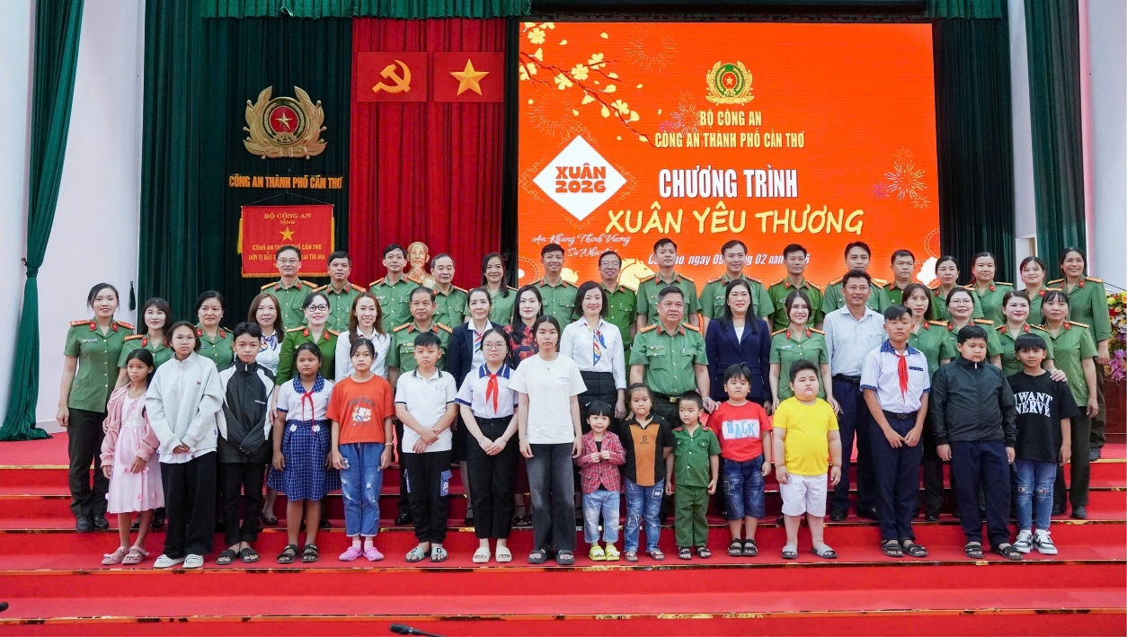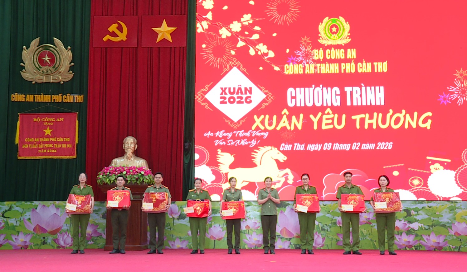 Nằm trong chuỗi các hoạt động “Mừng Đảng quang vinh, mừng xuân Bính Ngọ 2026”, chào mừng thành công Đại hội đại biểu toàn quốc lần thứ XIV của Đảng, sáng 09/02, Công an thành phố Cần Thơ tổ chức chương trình “Xuân yêu thương” trao tặng quà cho 29 cán bộ, chiến sĩ, đoàn viên, hội viên có hoàn cảnh khó khăn và 74 cháu do Công an thành phố nhận bảo trợ trong Mô hình “Tình thương cho em, hậu COVID” và Chương trình “Mẹ đỡ đầu” với tổng kinh phí 150 triệu đồng. Tham dự chương trình có Đại tá Nguyễn Thanh Tràng, Thành ủy viên, Phó Bí thư Đảng ủy, Phó Giám đốc Công an thành phố cùng đại diện lãnh đạo các cơ quan, ban ngành thành phố, các đơn vị nghiệp vụ và Công an cấp xã.