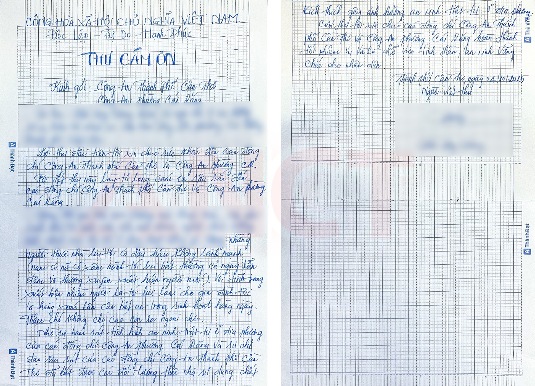 Người dân gửi thư cảm ơn lực lượng Công an phường Cái Răng