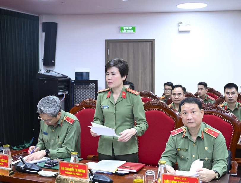 Đại tá Nguyễn Thị Phương, Phó Chánh Văn phòng Bộ Công an báo cáo tình hình, kết quả công tác bảo đảm ANTT 05 sự kiện