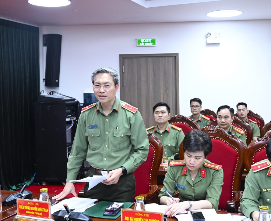 Thiếu tướng Nguyễn Quốc Toản, Chánh Văn phòng Bộ Công an điều hành phần tham luận tại Hội nghị